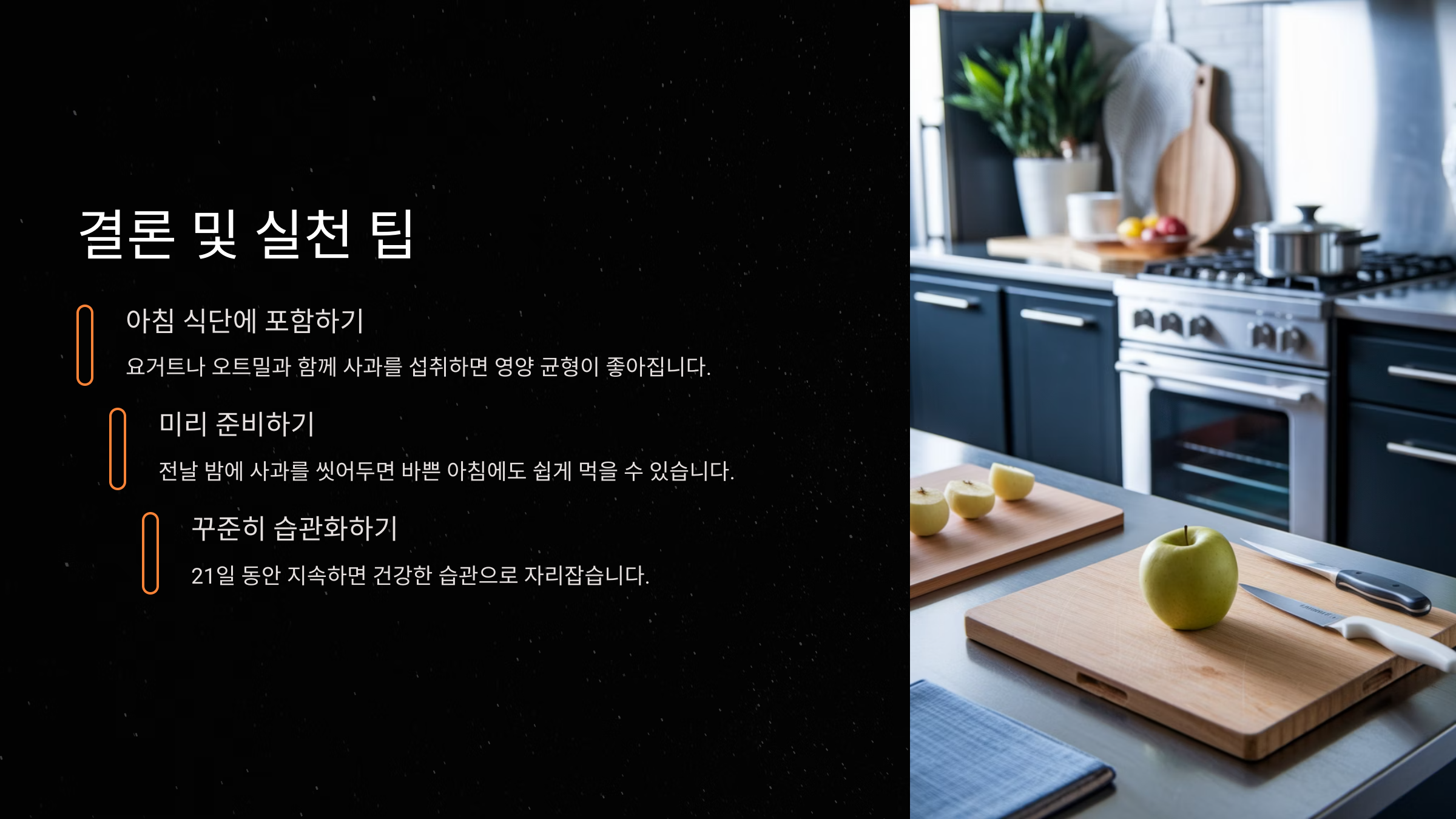 결론은 이거예요. 아침 사과는 단순한 과일이 아니라, 하루를 위한 자연 비타민! 건강한 아침 루틴의 핵심이라고 해도 과언이 아니에요.