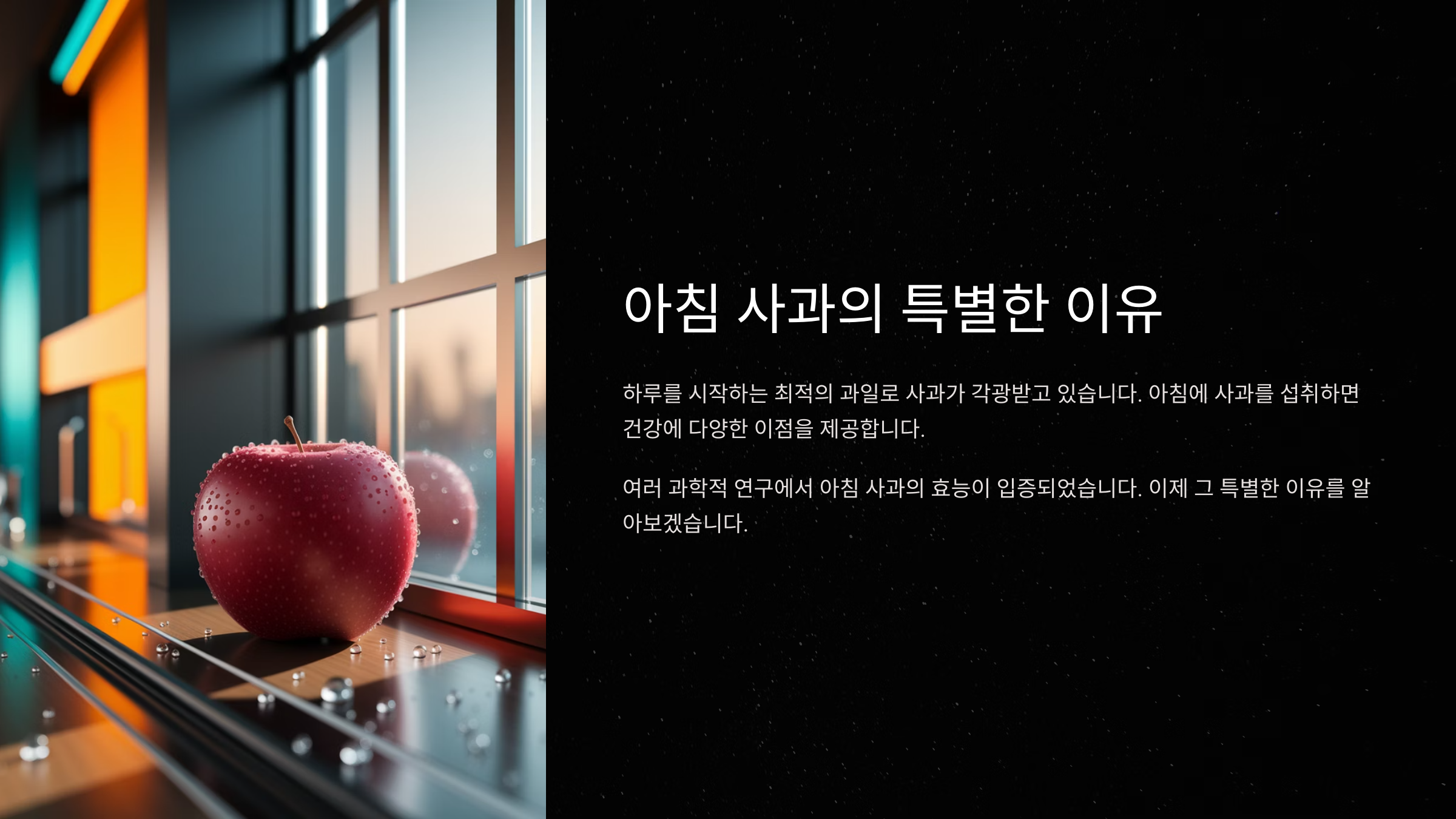 “아침에 먹는 사과는 금, 저녁에 먹는 사과는 독”이라는 말 들어본 적 있죠? 그만큼 아침 사과는 건강에 정말 좋은 과일이에요. 하루를 시작할 때 신선한 과일 한 입은 활력을 주고, 몸의 시스템을 깨우는 데 아주 효과적이거든요.