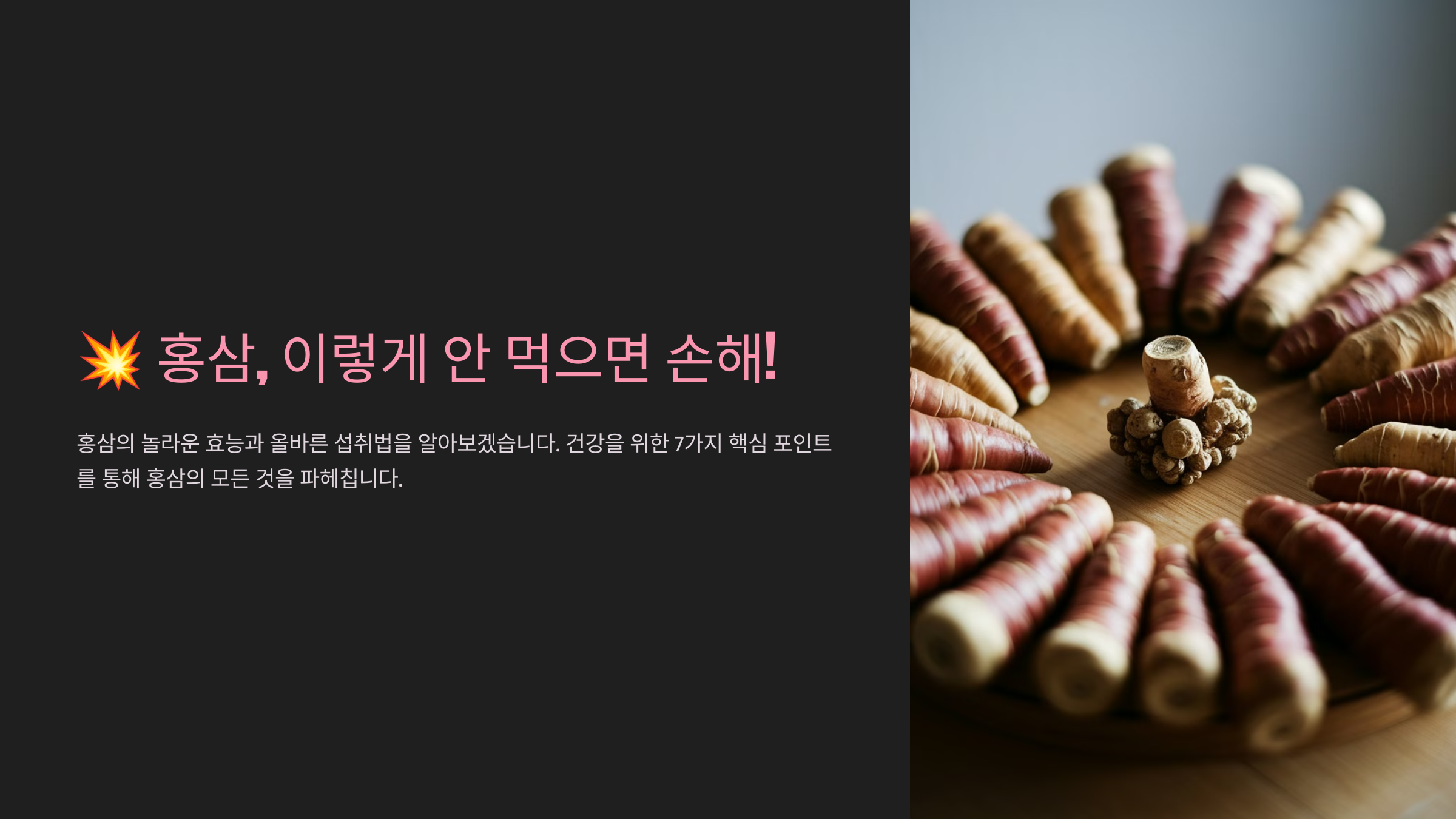 내가 생각했을 때 홍삼을 제대로 활용하려면 그 정체부터 확실히 알고, 최적의 섭취 방법을 알아야 해요. 오늘은 홍삼의 모든 것을 속속들이 파헤쳐 볼게요! 💪