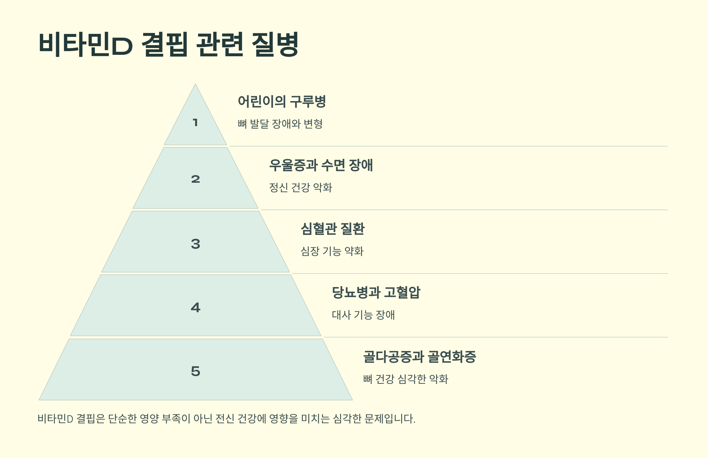 비타민D가 부족하면 단순한 피로감이나 면역력 저하뿐만 아니라, 다양한 심각한 질병이 발생할 수 있어요. 여기에서 비타민D 결핍과 연관된 대표적인 질병을 살펴보고, 이를 예방하는 방법도 알려드릴게요! 🏥