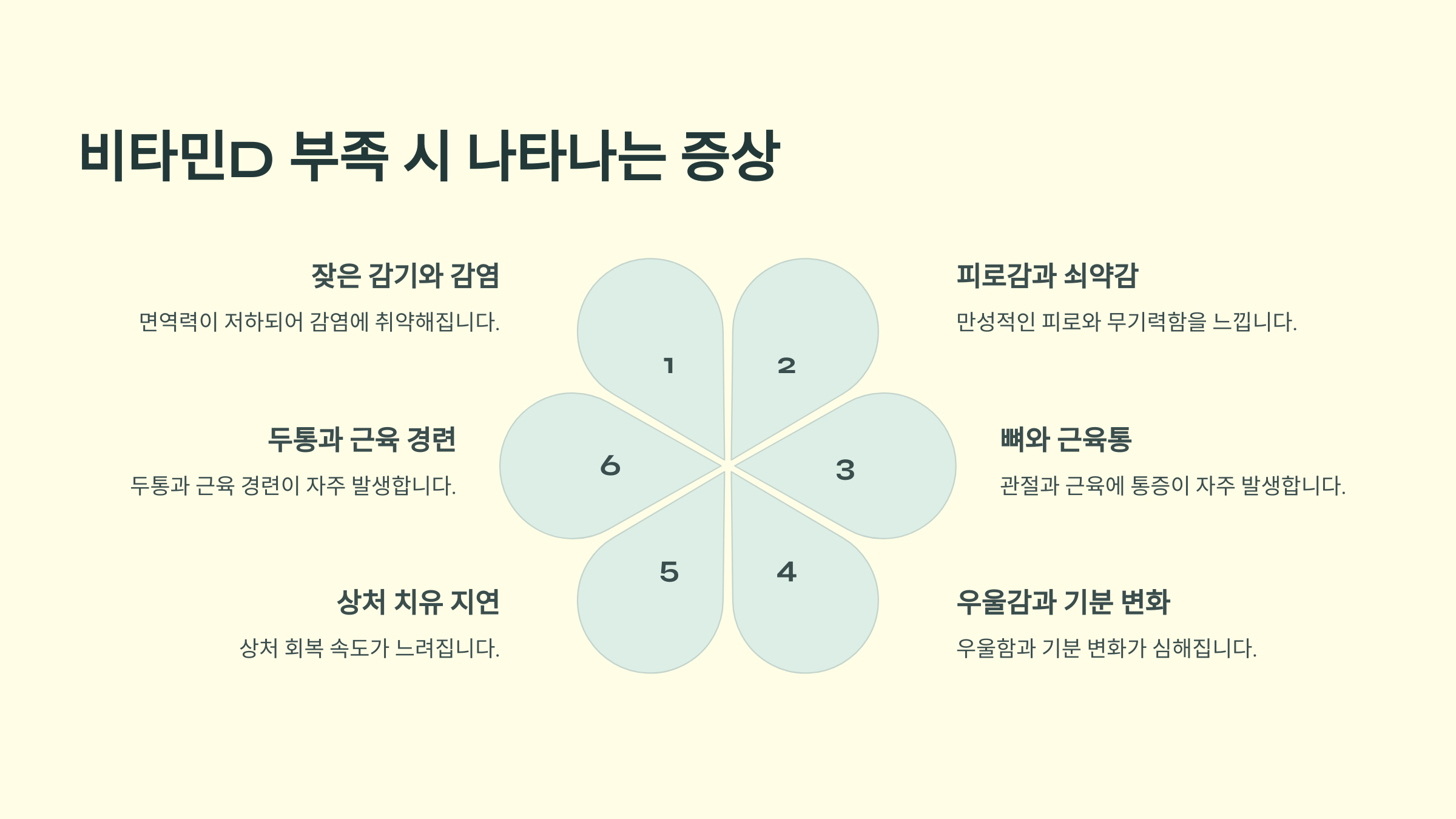 비타민D가 부족하면 우리 몸은 다양한 신호를 보내요. 하지만 이 신호를 무시하면 건강에 심각한 문제가 생길 수 있어요. 여기서 비타민D 결핍의 주요 증상을 알아볼게요.