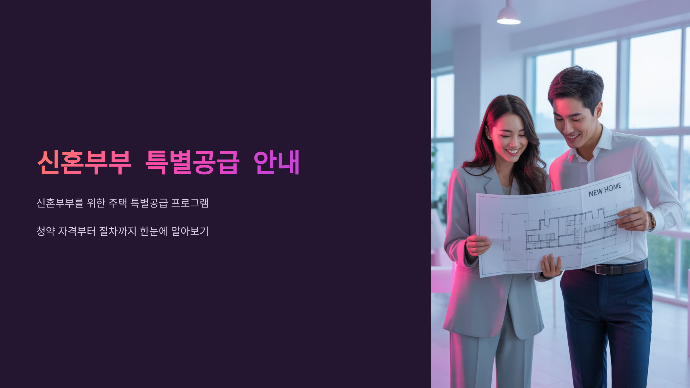 혼인기간이 7년 이내인 부부라면 '신혼부부 특별공급' 제도를 통해 내 집 마련의 기회를 좀 더 수월하게 얻을 수 있어요. 이 제도는 주택 시장에서 무주택 신혼부부가 안정적인 주거를 마련할 수 있도록 도와주는 국가 정책이에요.