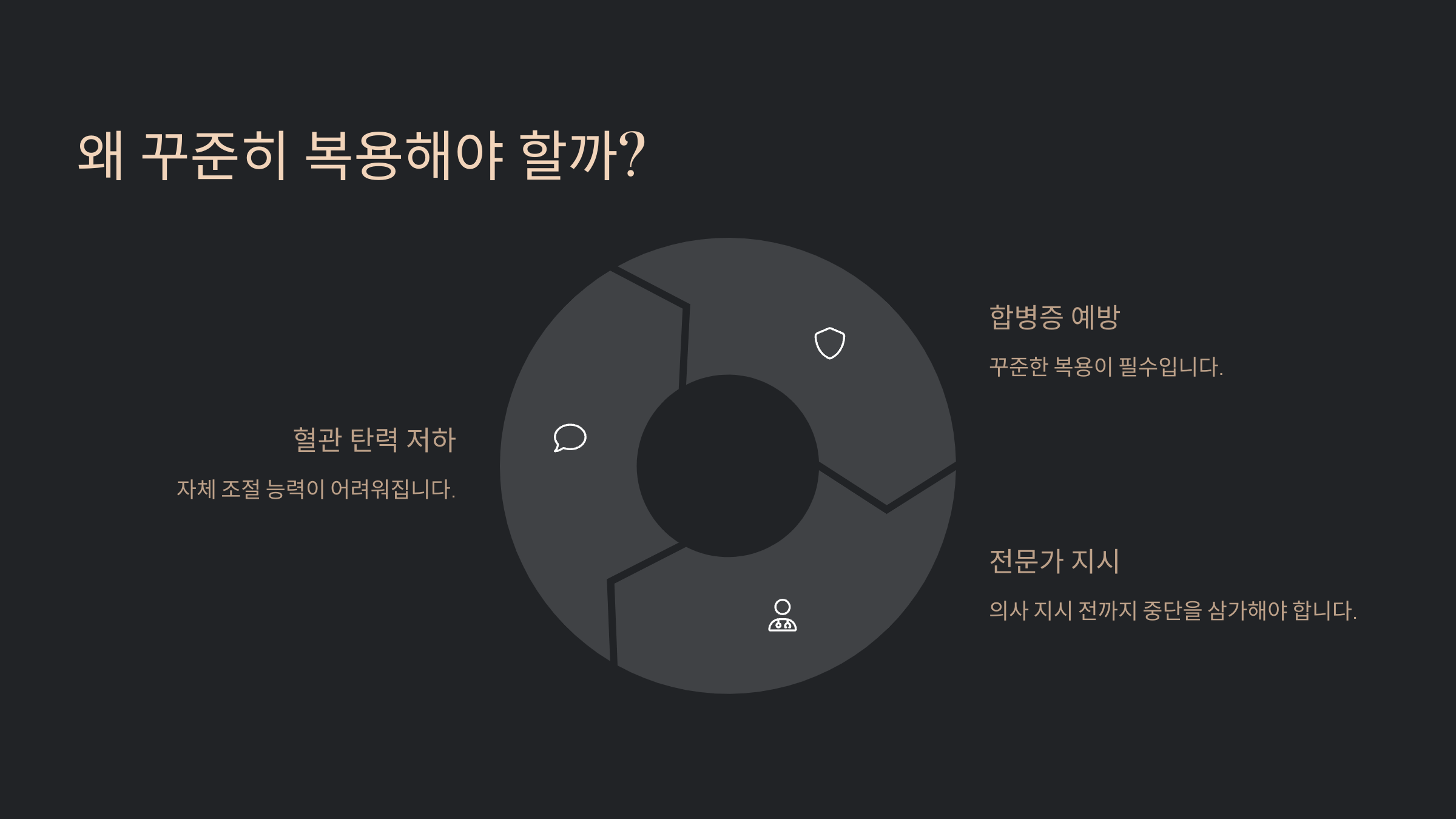 A1. 갑작스런 중단은 혈압 리바운드를 유발해 뇌출혈, 심근경색 등의 위험을 높일 수 있어요.