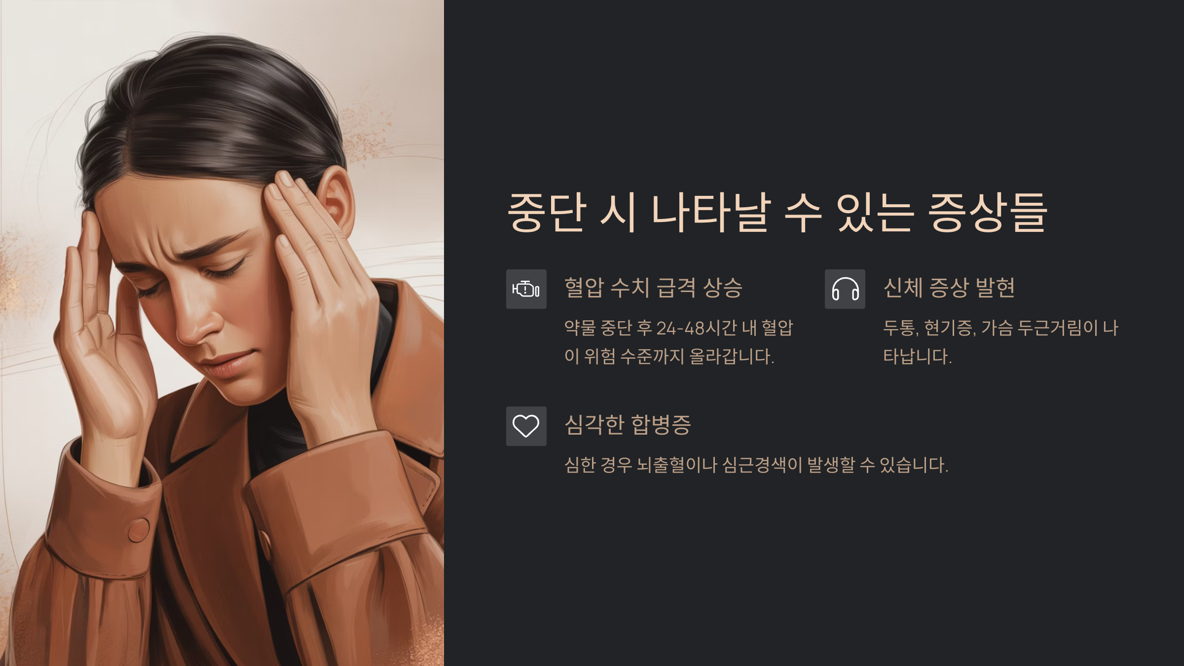 이제 이어지는 섹션에서는 실제로 약을 중단했을 때 나타나는 다양한 증상들을 자세히 살펴볼게요!