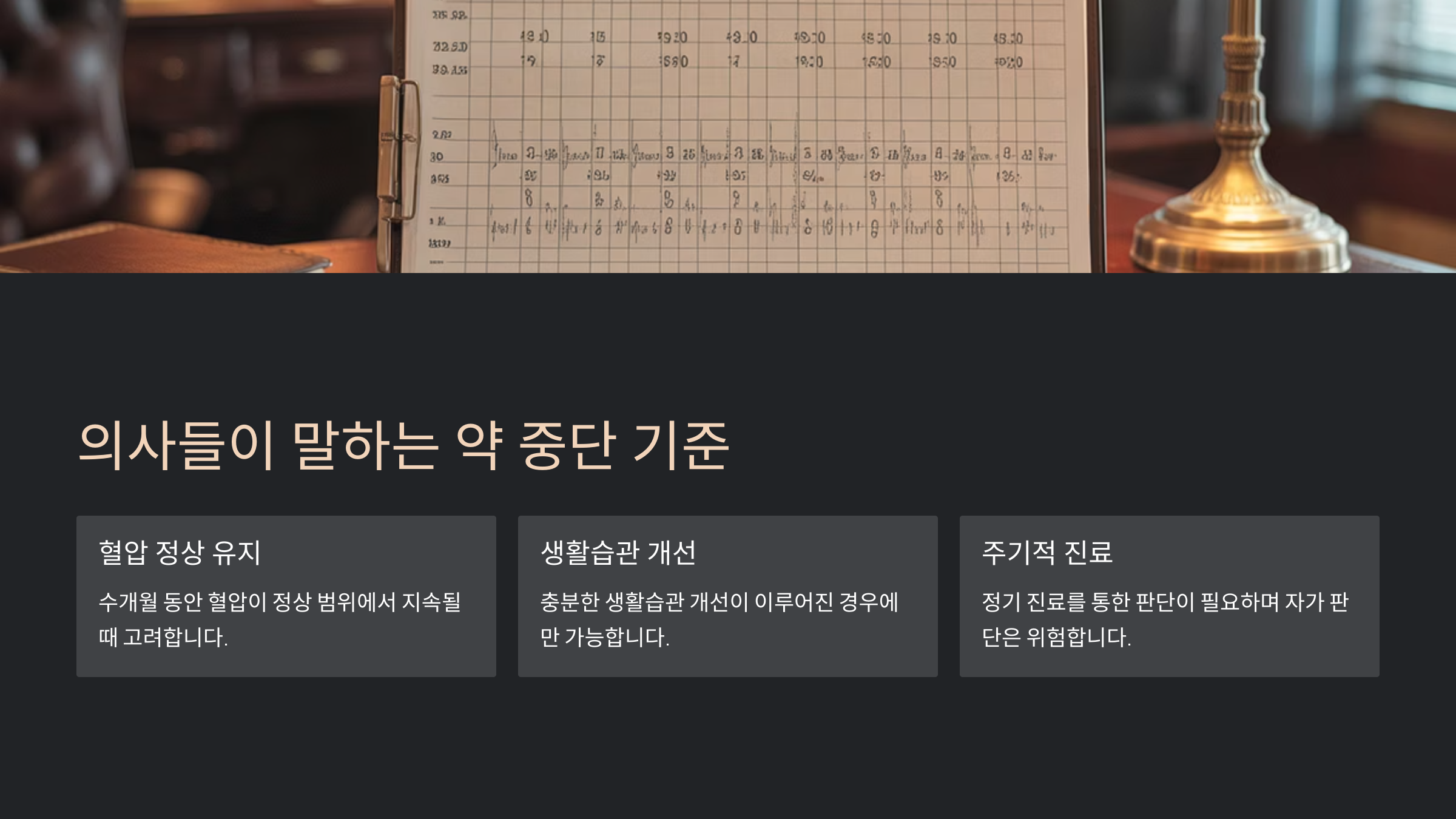 또한 의사들은 중단을 원할 경우 ‘시범 감량 기간’을 먼저 설정해요. 약 용량을 절반으로 줄이거나, 격일 복용을 하며 혈압 반응을 보는 식이에요. 이때는 매일 아침·저녁 자가 측정 결과가 아주 중요해요.