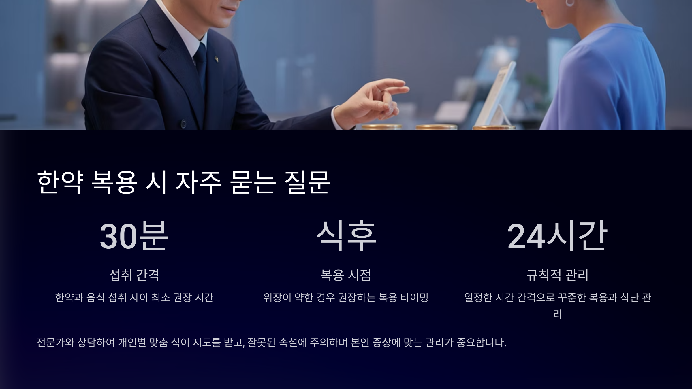 Q8. 한약 복용 시간과 식사 시간은 어떻게 맞춰야 하나요?