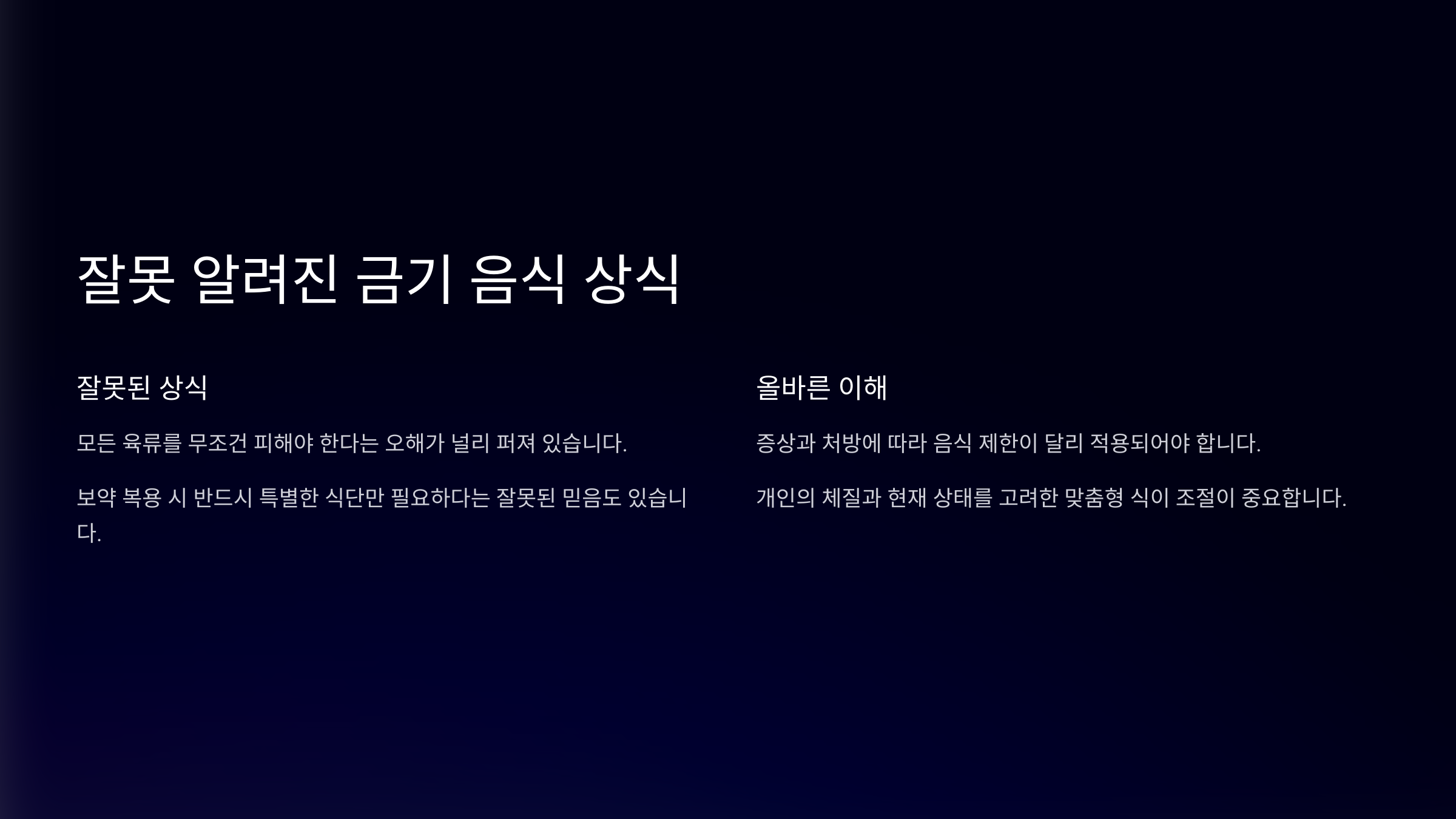 | 음식 | 오해 내용 | 실제 상황 |