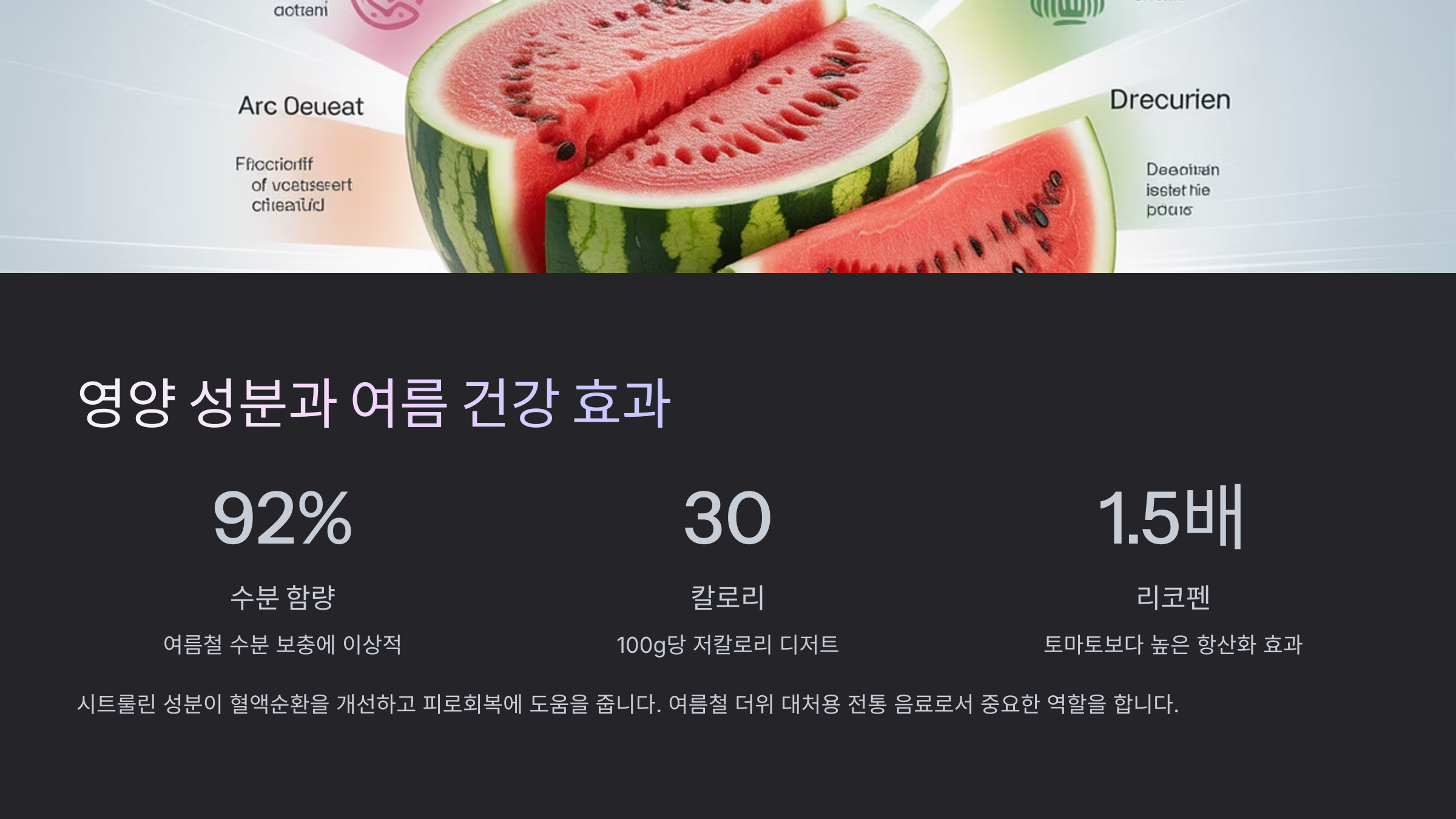 또한 수박에는 리코펜이라는 항산화 성분이 들어있어서 체내 염증 완화와 심혈관 건강에 도움을 줘요. 여름철 더위로 지치기 쉬운 몸에 수박화채 한 그릇은 진정한 에너지 충전이 되는 거죠.