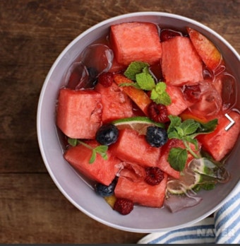 A7. 보통은 화채 자체가 음료 겸 디저트지만, 아메리카노나 아이스티와도 잘 어울려요.