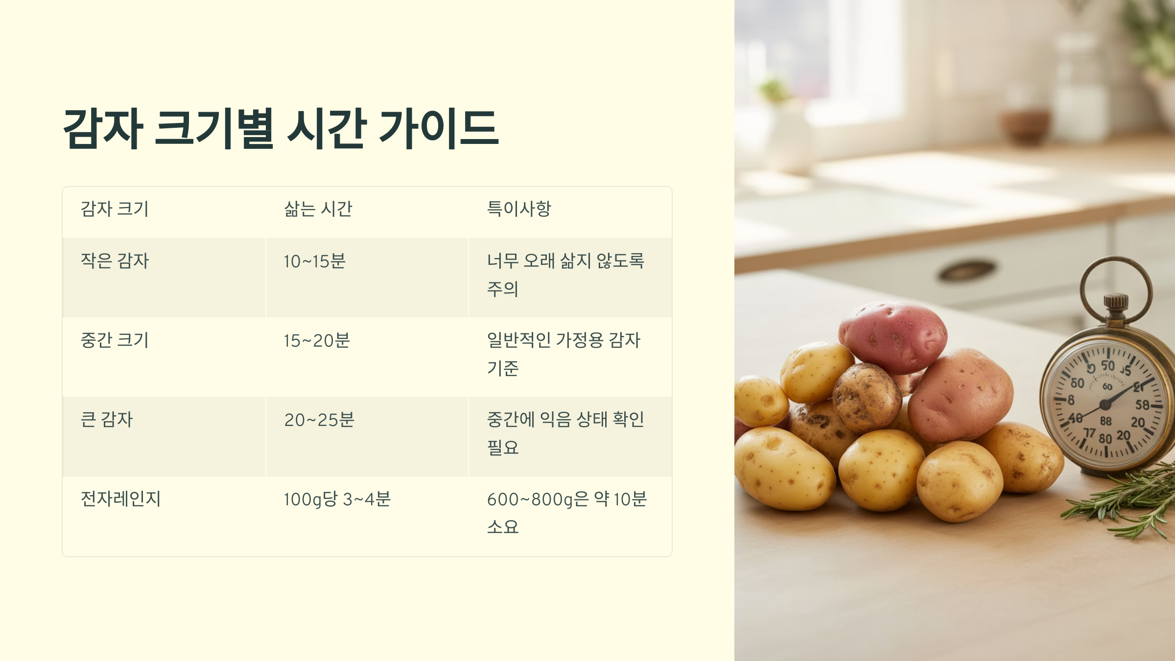 | 작은감자 | 3-4cm | 12-15분 | 10-13분 |