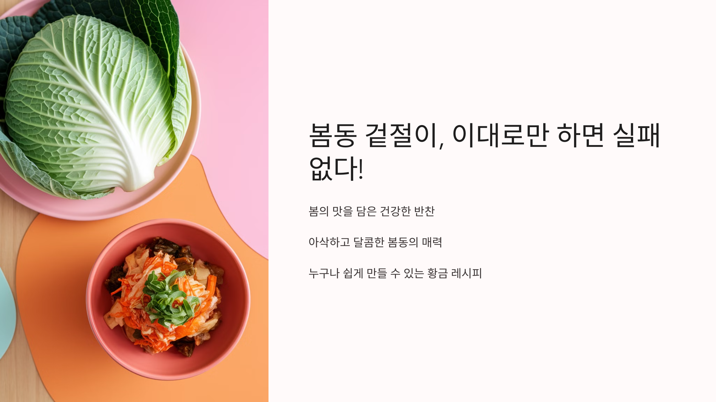 하지만, 양념이 잘 배지 않거나 씁쓸한 맛이 난다면? 🤔 걱정 마세요! 이번 글에서 봄동 겉절이를 맛있게 만드는 핵심 비법을 모두 공개할게요! 🎉