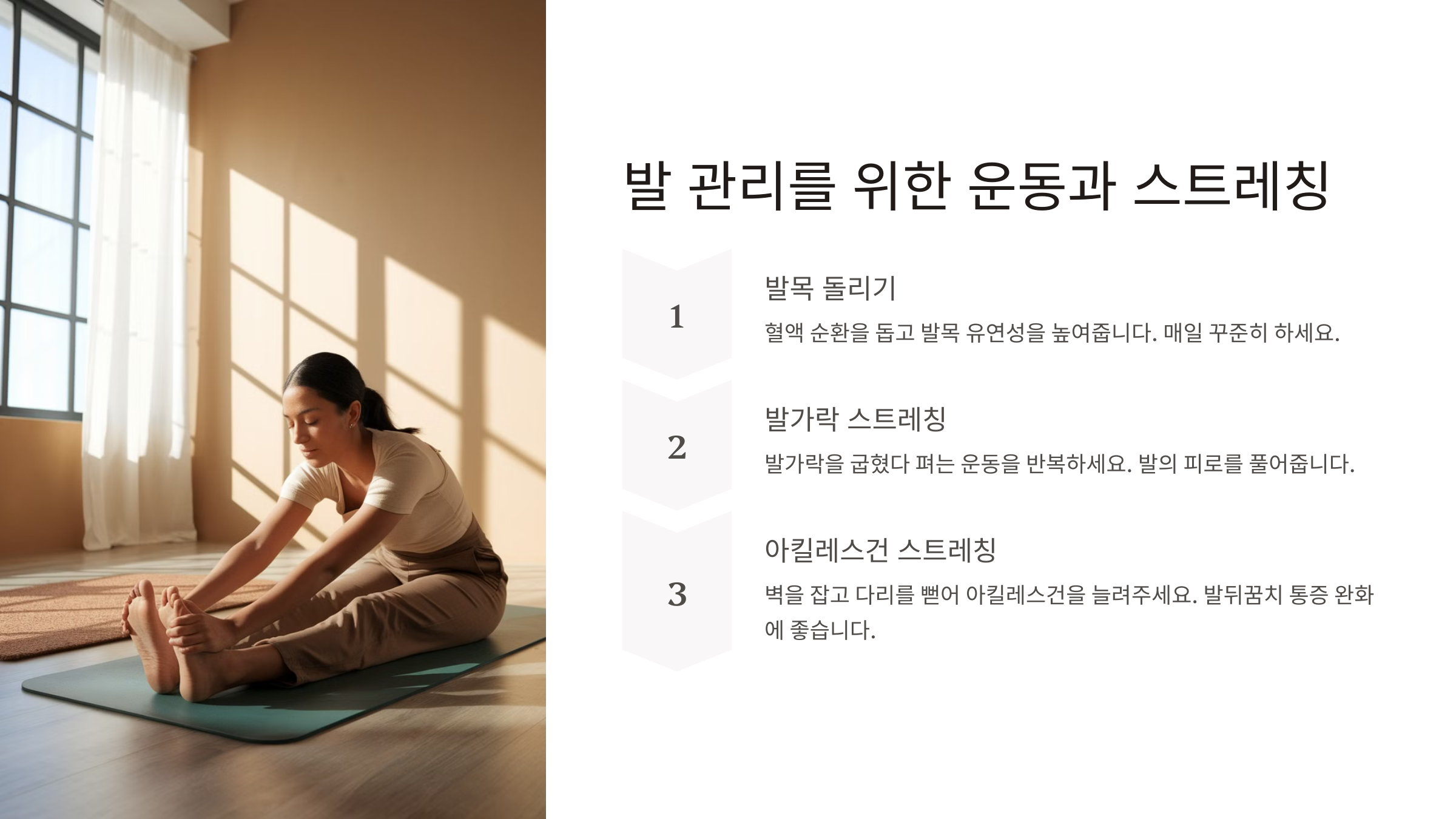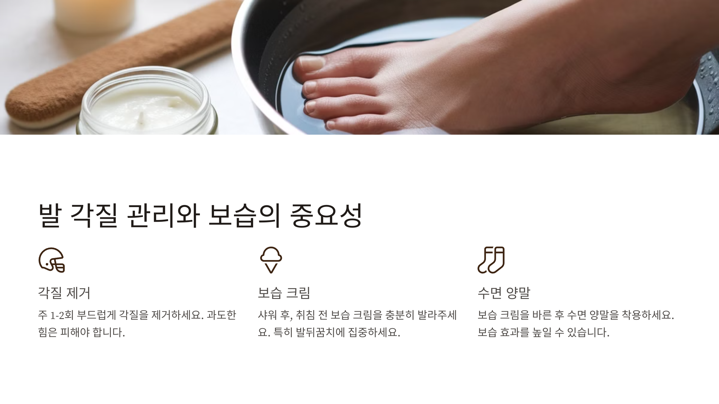 이런 간단한 홈케어 방법을 꾸준히 실천하면 부드럽고 건강한 발을 유지할 수 있어요! 🦶✨