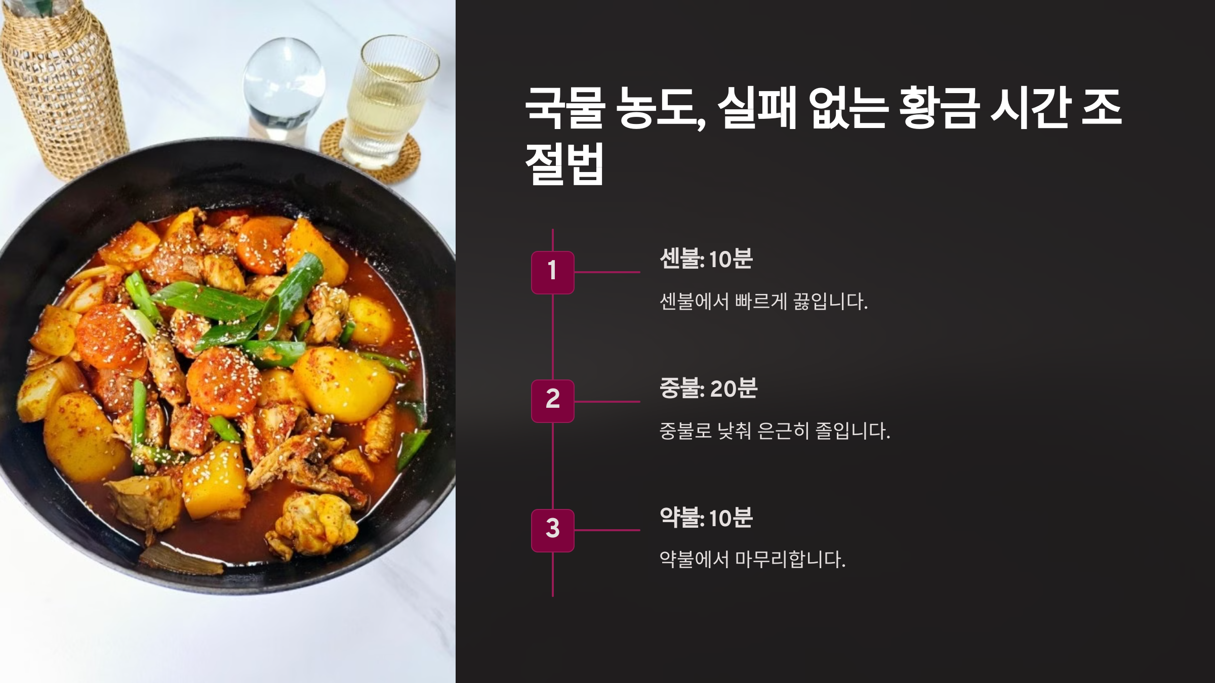 이렇게 하면 적당한 농도의 깊은 국물이 있는 닭볶음탕을 만들 수 있어요! 🍲✨