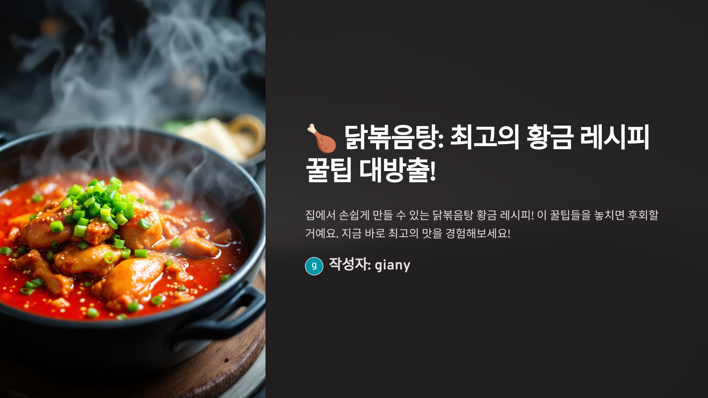 닭볶음탕은 누구나 좋아하는 국민 요리 중 하나예요! 하지만 닭의 잡내를 없애고, 양념이 속까지 잘 배도록 만드는 법을 모르면 뭔가 아쉬운 맛이 날 수 있어요. 제대로 된 황금 레시피를 알고 만들면, 한 번 맛본 사람은 절대 잊을 수 없는 깊은 감칠맛을 느낄 수 있답니다. 🍗🔥