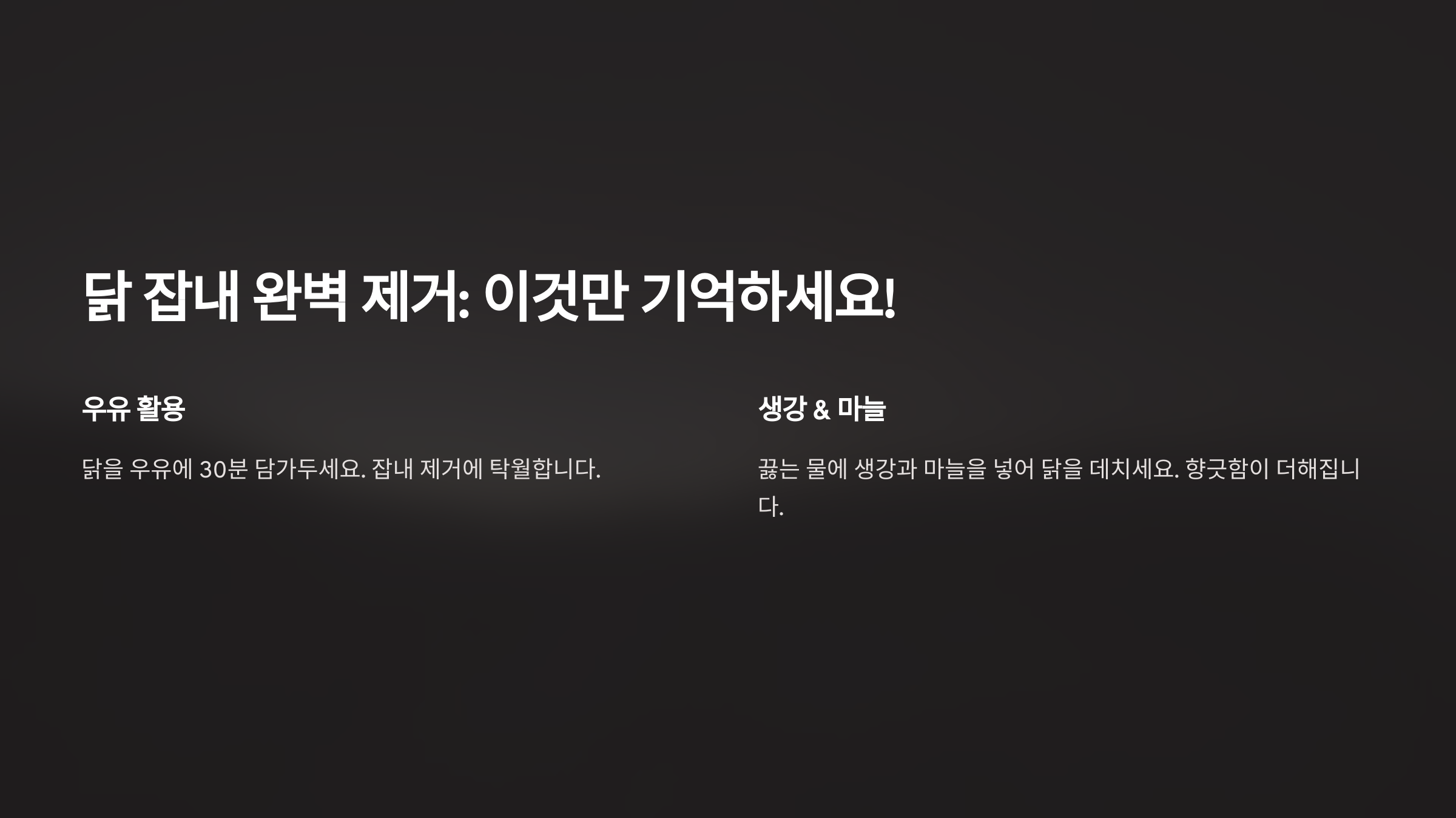 그럼 바로 시작해볼까요? 먼저, 닭의 잡내를 완벽히 제거하는 방법부터 알아봐요! 🧼