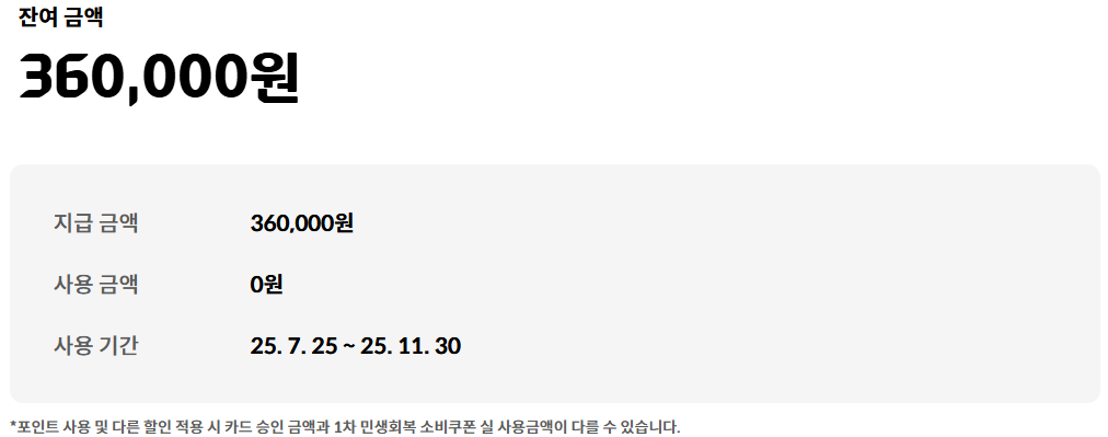 연체 중인 카드는 사용이 안 돼요. 카드가 정지 상태면 소비쿠폰도 사용할 수 없으니 미리 확인하고 정상화시켜두세요!