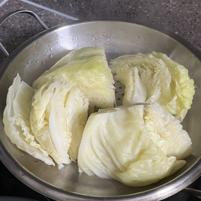 익힘 정도를 확인하는 방법도 알아두면 좋아요. 젓가락으로 양배추의 두꺼운 부분을 찔러보세요. 쉽게 들어가면 다 익은 거예요. 색깔도 확인해보세요. 연한 녹색에서 밝은 연두색으로 변하면 적당히 익은 상태예요. 너무 오래 찌면 누런색이 되고 영양소도 파괴돼요. 나의 생각에는 살짝 아삭한 느낌이 남아있을 정도가 가장 맛있는 것 같아요.
