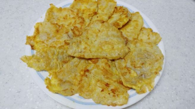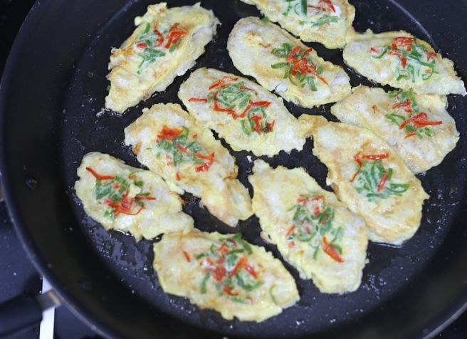 A13. 계란 대신 부침가루나 튀김가루를 물에 되직하게 반죽하여 옷을 입혀 부쳐도 됩니다. 다만, 계란전과는 맛과 식감에 차이가 있습니다.
