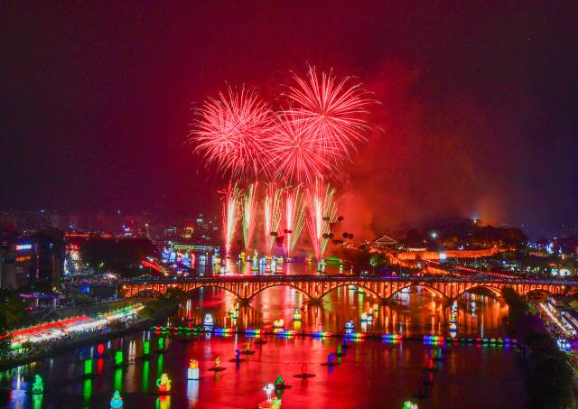두 번째는 전통과 현대 기술의 환상적인 만남, '불꽃놀이와 드론 라이트쇼'입니다. 밤하늘을 수놓는 화려한 불꽃은 유등의 은은한 빛과 어우러져 황홀경을 선사합니다. 여기에 수백 대의 드론이 일사불란하게 움직이며 다양한 형상과 메시지를 만들어내는 드론 라이트쇼는 감탄을 자아내게 합니다. 전통적인 불꽃과 최첨단 드론쇼의 콜라보는 오직 이곳에서만 볼 수 있는 특별한 감동을 안겨줄 것입니다.