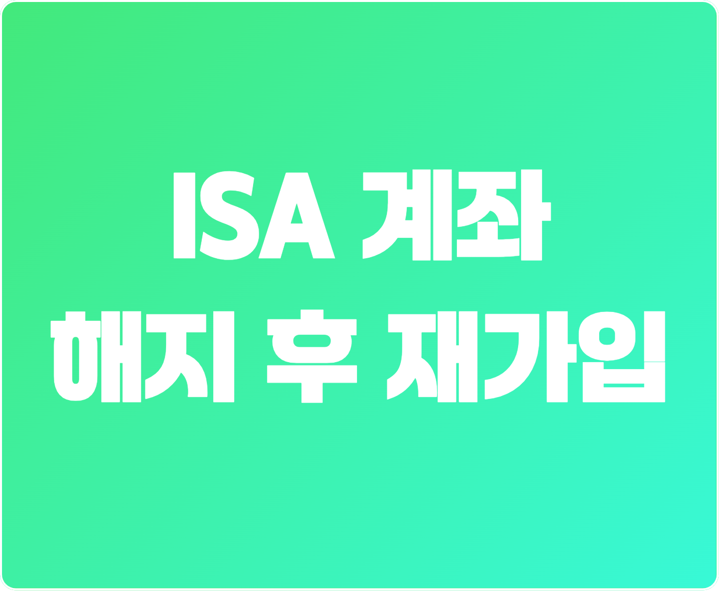 | 4단계: 신규 재가입 | 원하는 금융사/유형으로 신규 ISA 계좌 개설 | 의무기간 3년, 납입 한도 모두 새로 시작 |