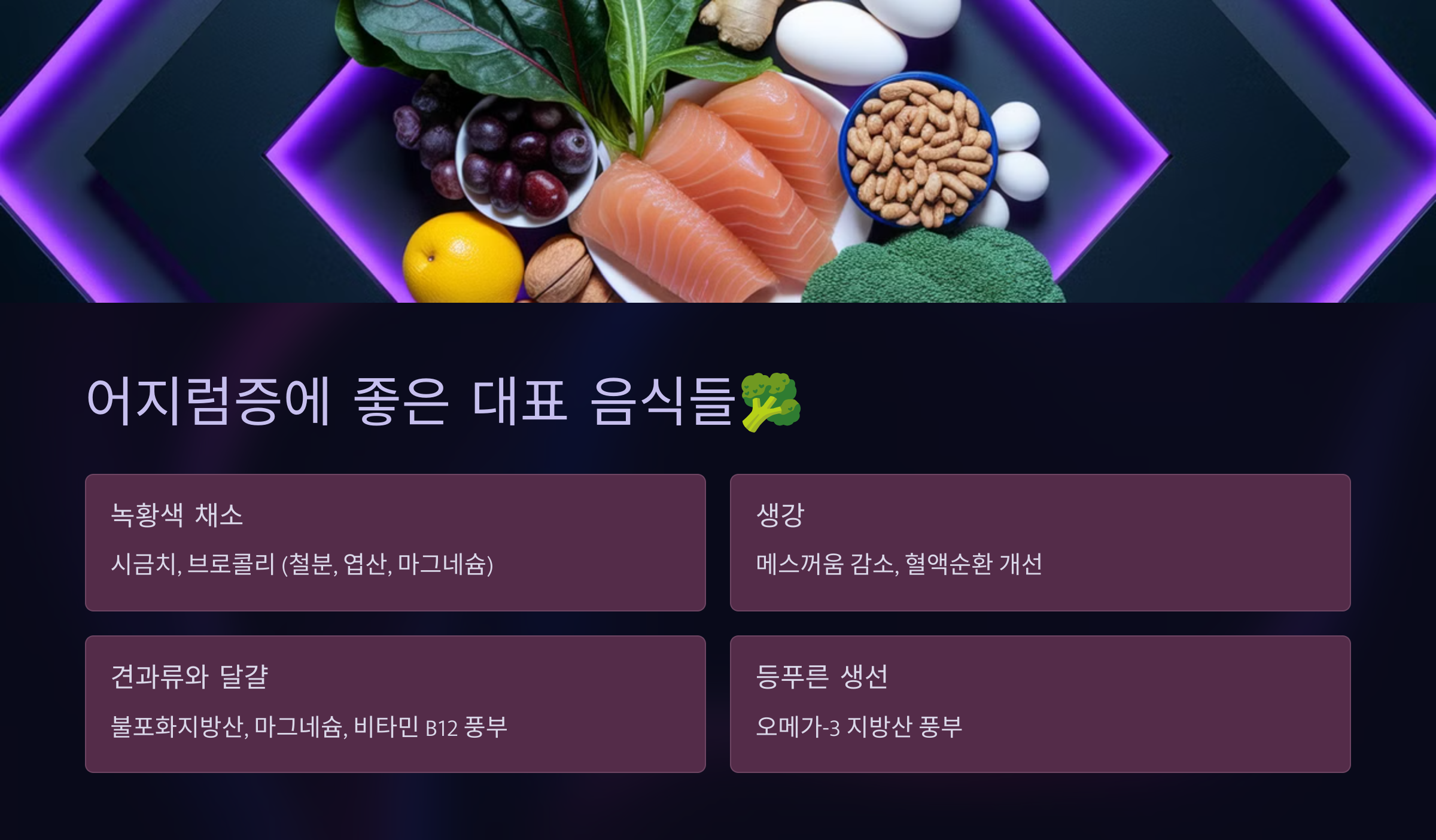 | 연어 | 오메가-3 | 뇌혈류 개선 |