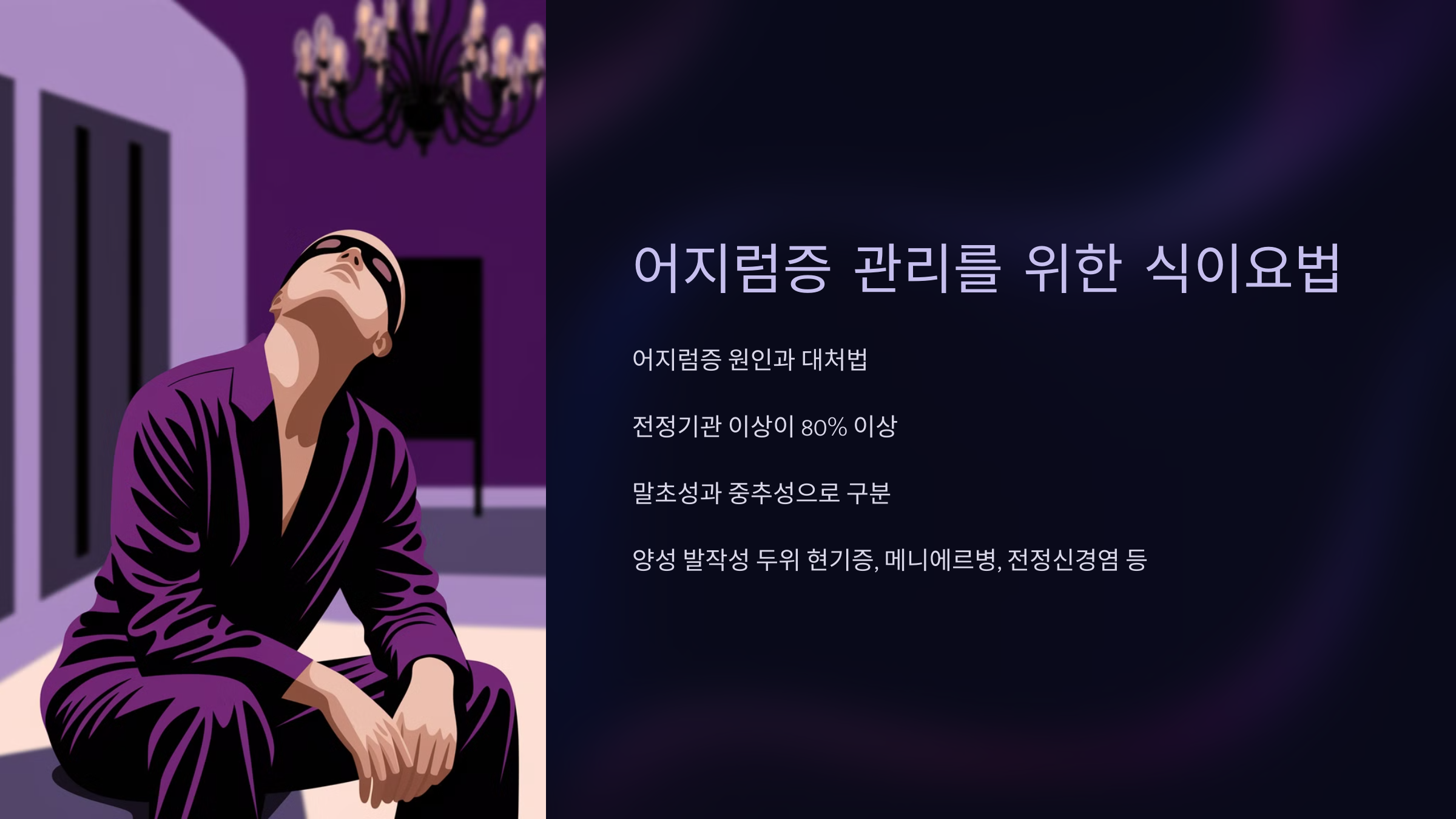 어지럼증은 여러 원인에 의해 발생할 수 있는 복합적인 증상이랍니다. 단순히 머리가 핑 도는 느낌만이 아니라, 중심을 잡기 힘들거나 땅이 움직이는 느낌, 빙글빙글 도는 회전성 어지럼증 등 종류도 다양해요. 정확한 원인을 아는 것이 식이요법에도 큰 도움이 돼요.