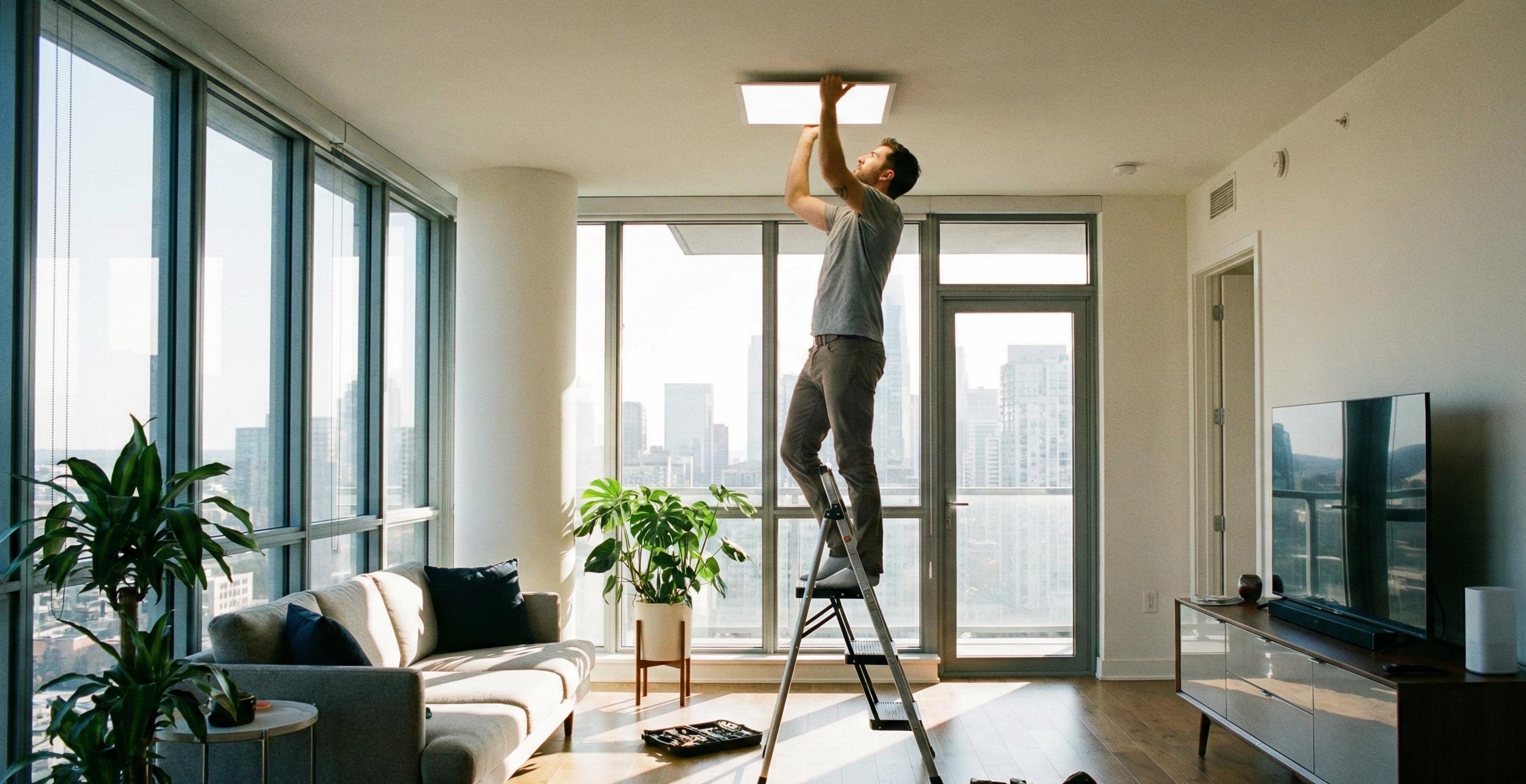 월세집 조명 교체에는 크게 두 가지 방식이 있습니다. 등기구 껍데기는 그대로 두고 내부의 형광등과 안정기만 떼어낸 뒤 LED 모듈을 붙이는 리폼 방식과 등기구 전체를 떼어내고 새것으로 바꾸는 통교체 방식입니다.