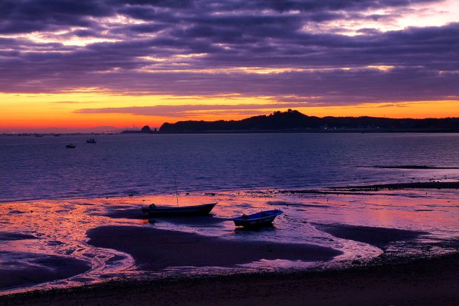 A22. 물이 빠지면 갯벌에 비친 붉은 빛을 담을 수 있어 밀물과는 또 다른 매력이 있습니다.