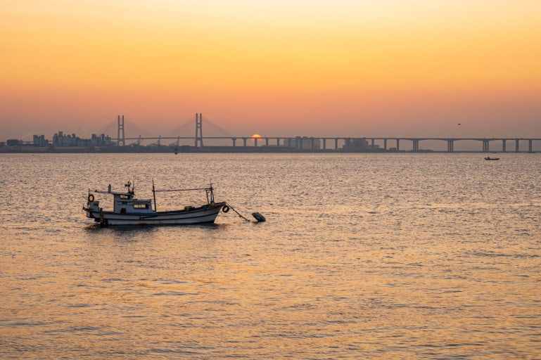 왜목마을이 자연 친화적인 서정미를 뽐낸다면, 한진포구는 인공 구조물과 자연이 어우러진 웅장하고 현대적인 일출을 보여줍니다. 당진시 송악읍에 위치한 한진포구는 과거 인천과 당진을 오가는 여객선이 다니던 큰 나루터였으며, 현재는 서해대교를 가장 아름답게 조망할 수 있는 곳으로 유명합니다. 이곳의 일출 하이라이트는 단연 서해대교 주탑 사이로 붉은 태양이 솟아오르는 순간입니다. 바다 위를 가로지르는 거대한 다리의 실루엣과 그 뒤로 번지는 붉은 여명은 보는 이로 하여금 감탄을 자아내게 하며, 사진작가들이 꼽는 최고의 출사지 중 하나입니다.