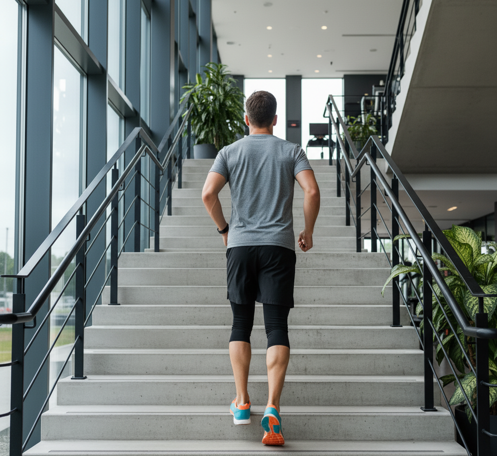 계단 오르기는 단순한 걷기가 아닙니다. 중력을 거슬러 몸을 위로 밀어 올리는 '수직 운동'이기 때문에 평지 걷기보다 훨씬 강도가 높습니다. 스포츠 의학에서는 계단 오르기를 '고강도 인터벌 트레이닝(HIIT)'의 일종으로 분류하기도 합니다.