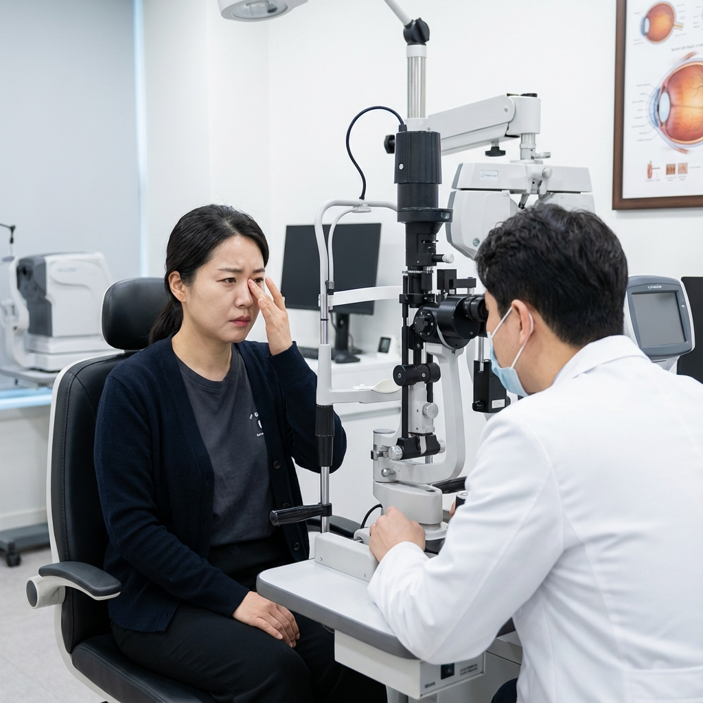 쇼그렌 증후군 같은 자가면역질환도 심한 안구건조증과 이물감을 유발합니다. 입안 건조증과 함께 눈이 매우 건조해지며, 중년 여성에게 많이 발생합니다. 갑상선 안병증(그레이브스병의 합병증)도 눈의 돌출, 건조함, 이물감을 일으킵니다. 이런 전신 질환과 관련된 눈 증상은 내과와 안과의 협진 치료가 필요합니다.