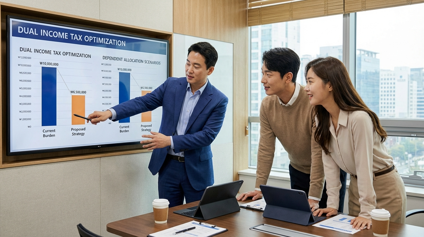 부양가족 공제를 배분할 때는 누가 받는 것이 세금을 더 많이 줄일 수 있는지 계산해 봐야 합니다. 일반적으로 소득이 높은 배우자가 받는 것이 유리하지만 의료비나 신용카드 공제와의 연계를 고려하면 다른 선택이 더 유리할 수도 있습니다.