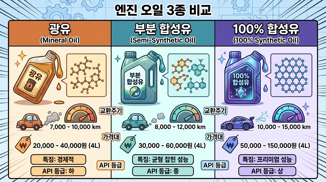 | 구분 | 광유 | 부분 합성유 | 100% 합성유 |
