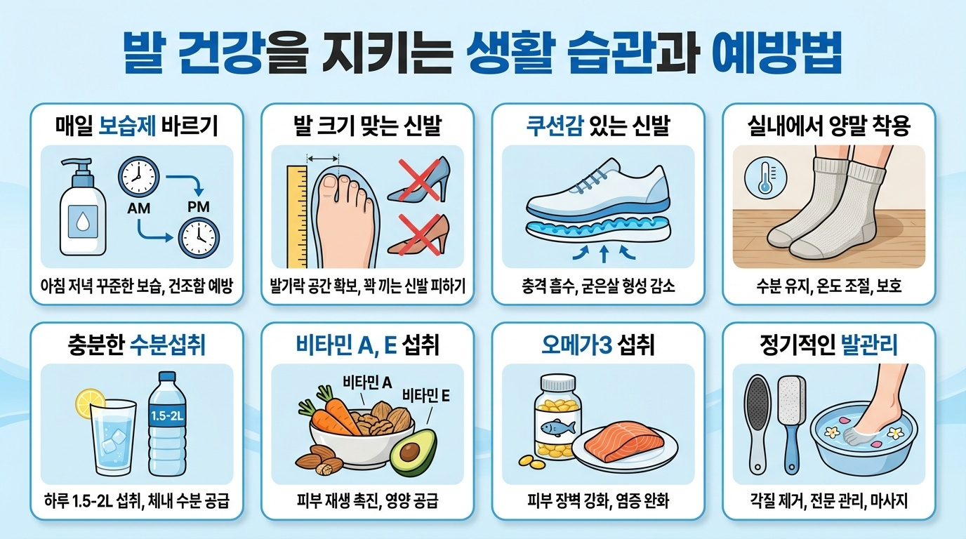 | 쿠션감 있는 신발 선택 | 충격 완화로 각질 생성 감소 |