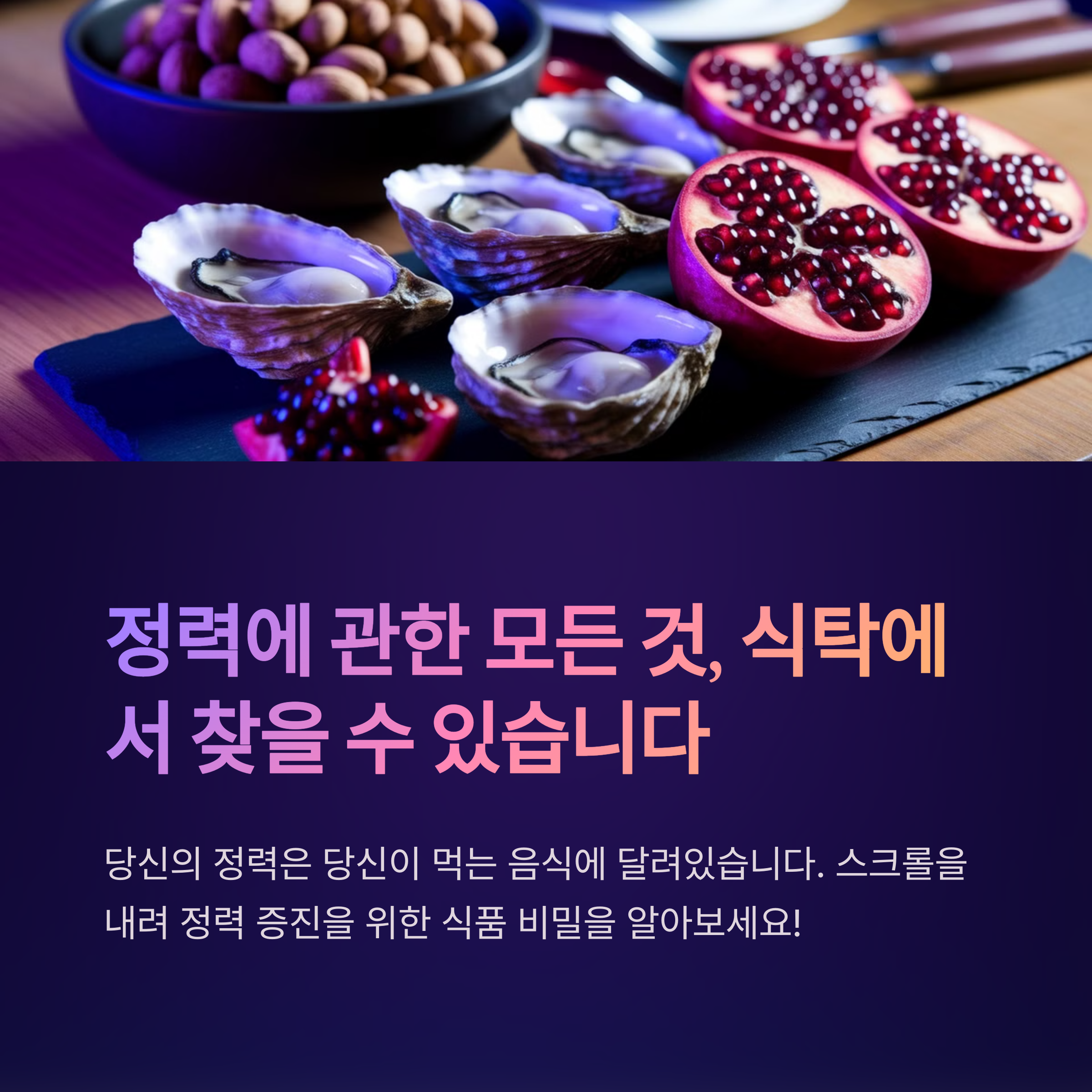정력이라는 단어, 단순히 성기능과 관련된 이야기 같지만 사실은 남성 건강 전반과 직결되는 중요한 키워드예요. 피로, 스트레스, 호르몬 변화로 인해 에너지가 떨어졌을 때, 음식으로 도움을 받을 수 있다는 건 정말 매력적인 사실이죠.