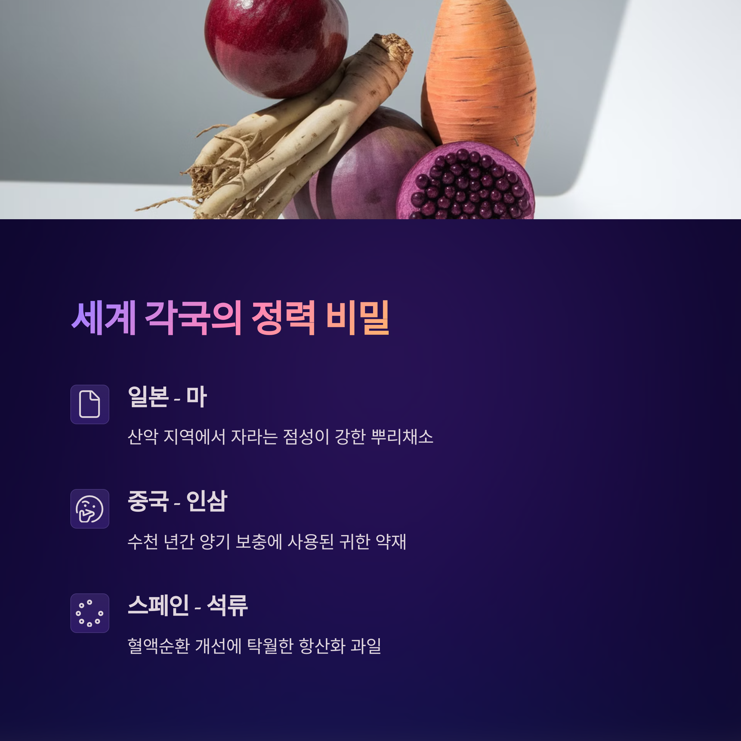 | 인도 | 아슈와간다 | 스트레스 해소, 테스토스테론 증가 |