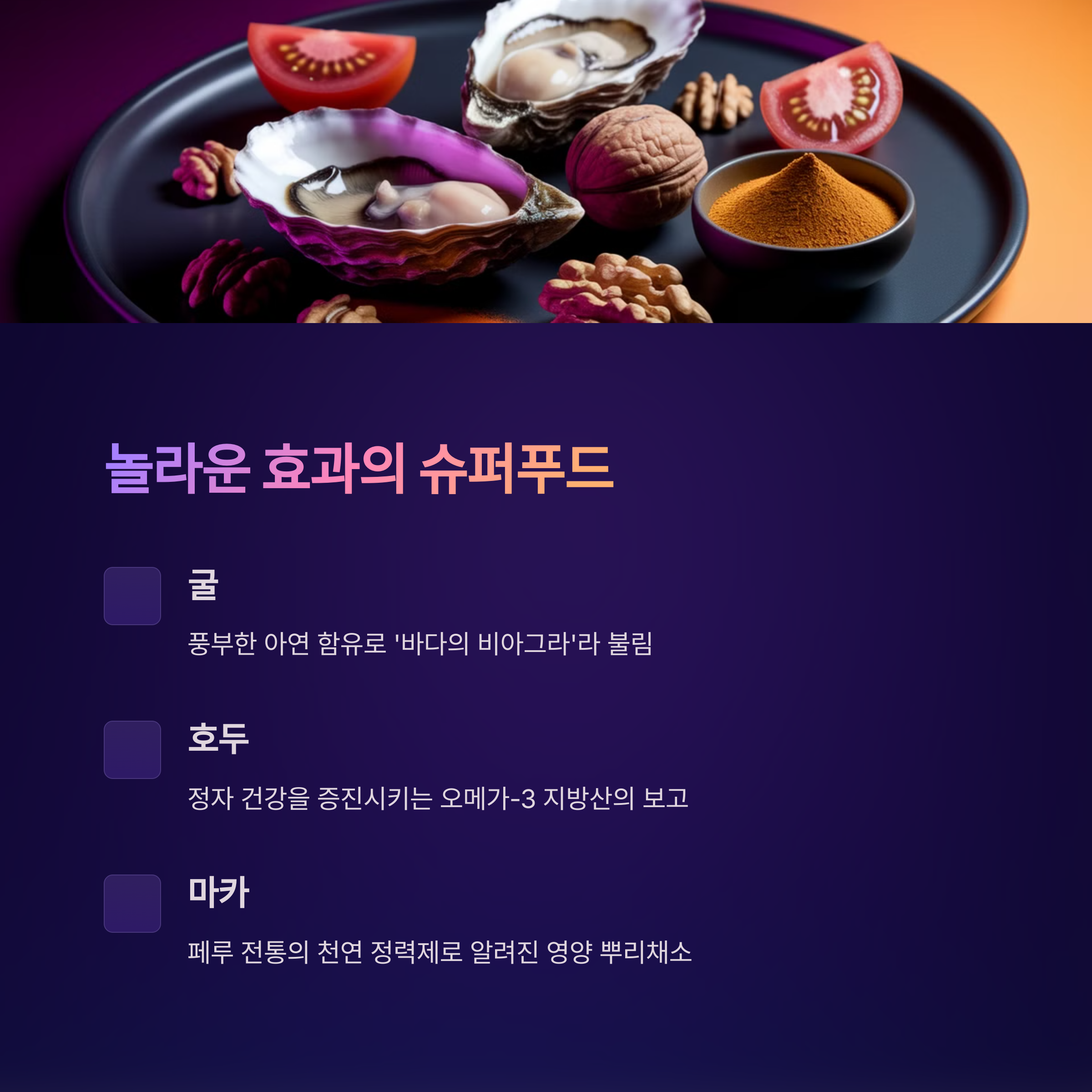 내가 생각했을 때 정력이라는 건 단순히 약이나 보조제에만 의존할 게 아니라 일상 식사에서부터 바꿔야 오래가고, 부작용도 없다고 느껴요. 하루하루의 습관이 쌓여 진짜 체력을 만드는 거니까요.