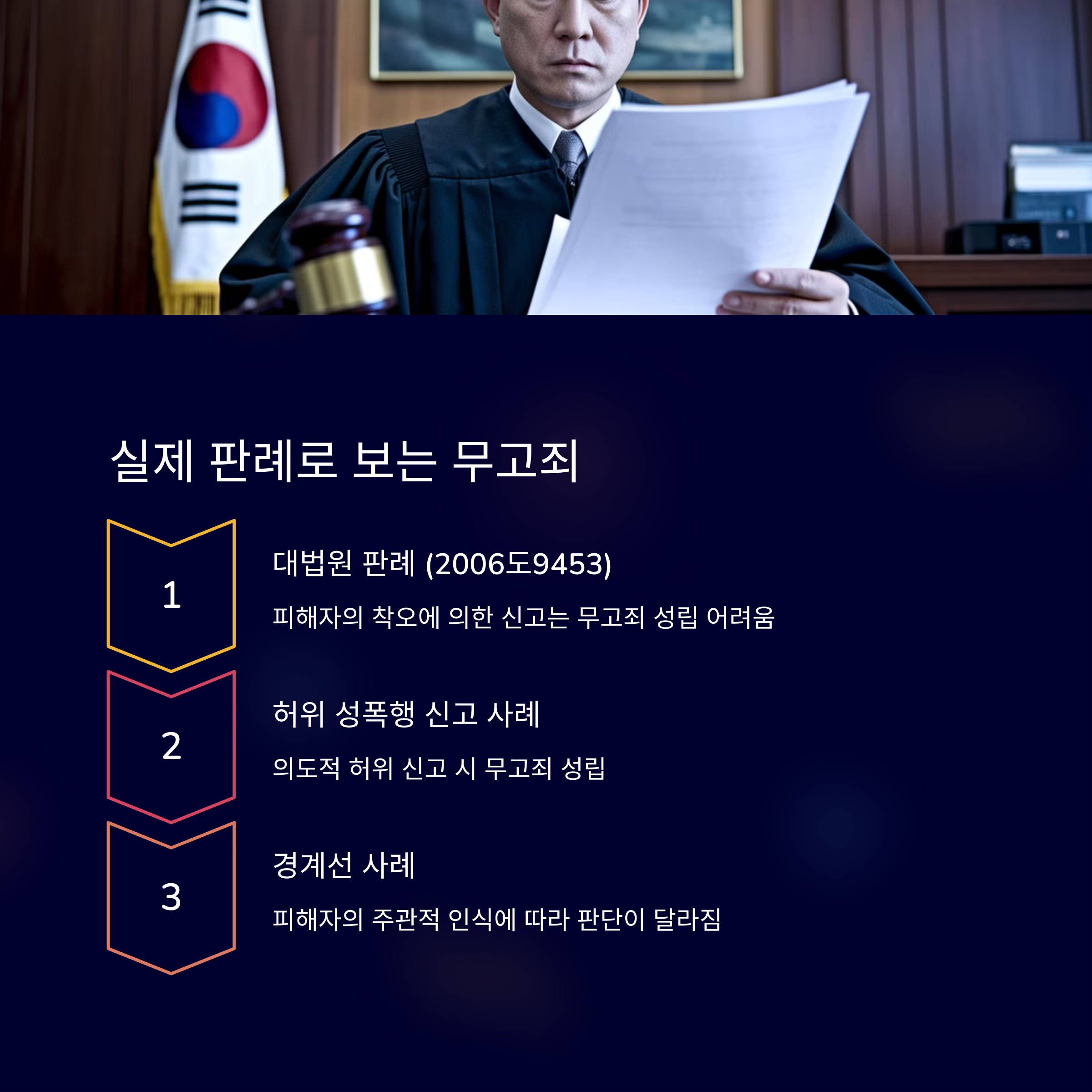 또 한 판례에서는 여성의 고소가 ‘복수 목적’으로 이뤄졌다는 친구와의 대화 녹취가 결정적 증거로 작용했어요. 이 경우 법원은 고의성이 충분히 입증됐다고 보고 무고죄 유죄 판결을 내렸죠.