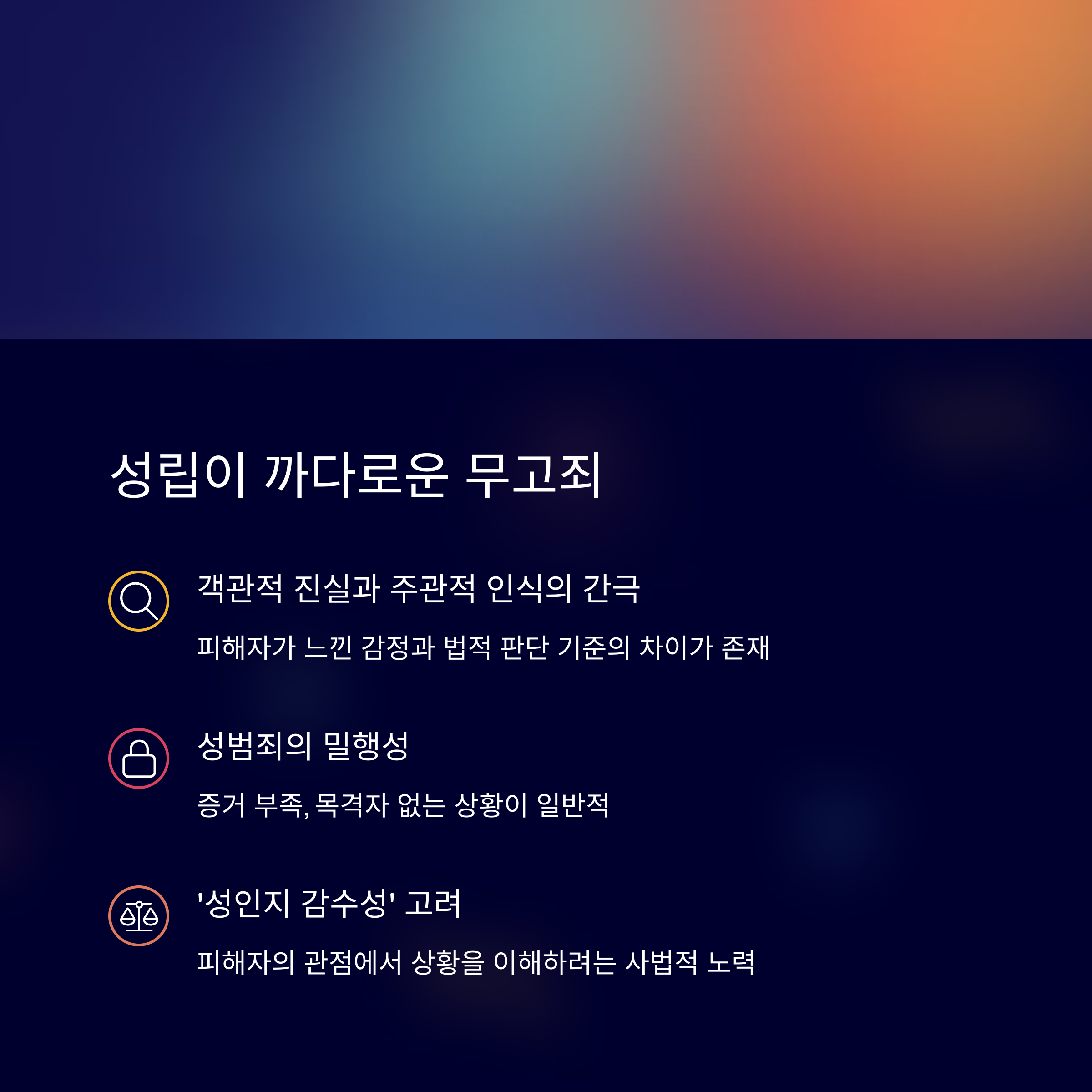 성범죄라는 민감한 주제이기에, 사법부도 그 진위를 가릴 때 높은 기준으로 접근해요. 한쪽 진술만으로 무고 또는 성범죄가 인정되기 어렵고, 정황증거와 행위의 일관성이 관건이랍니다.