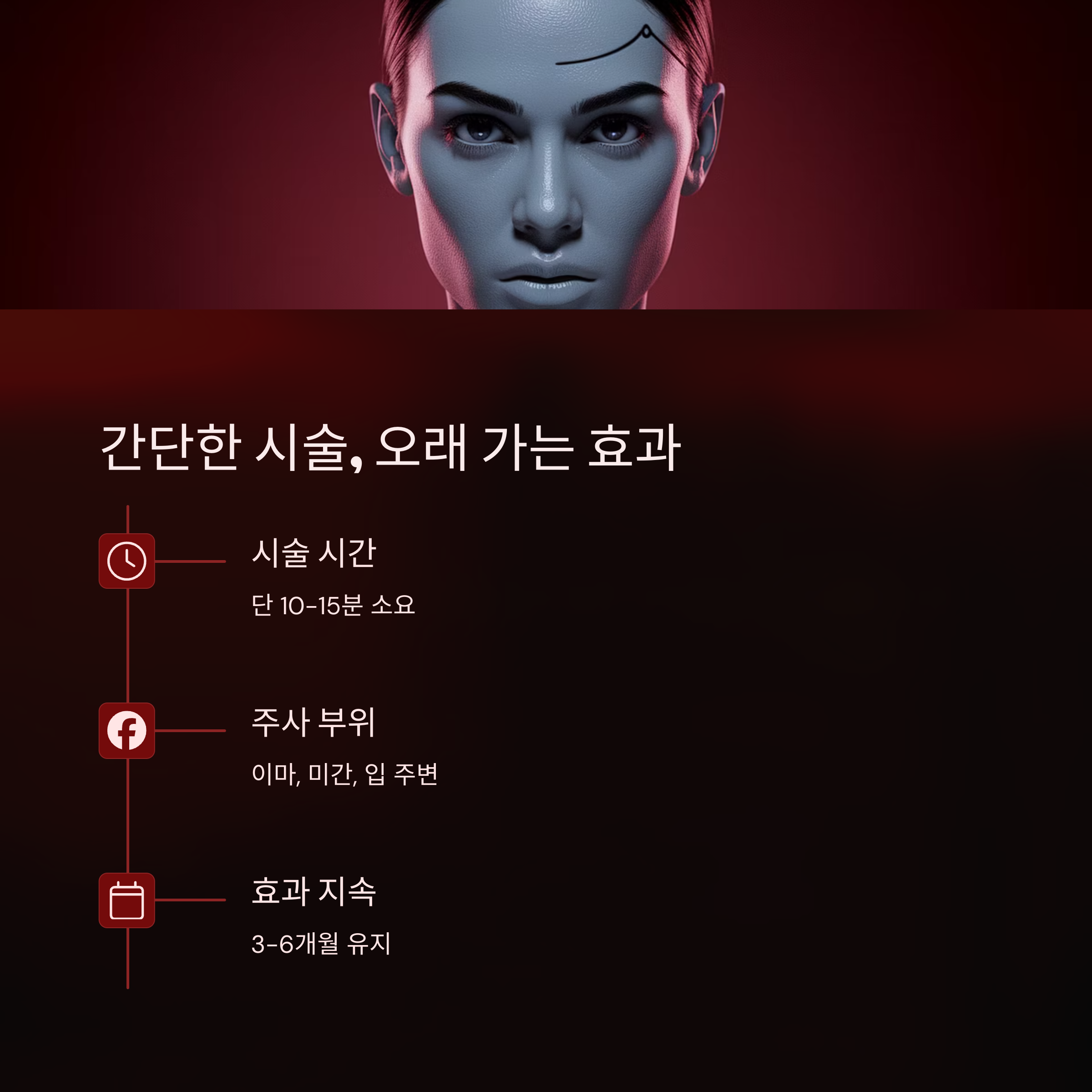 | 미용 | 이마, 미간, 눈가, 턱 | 주름 개선, 라인 정리 |