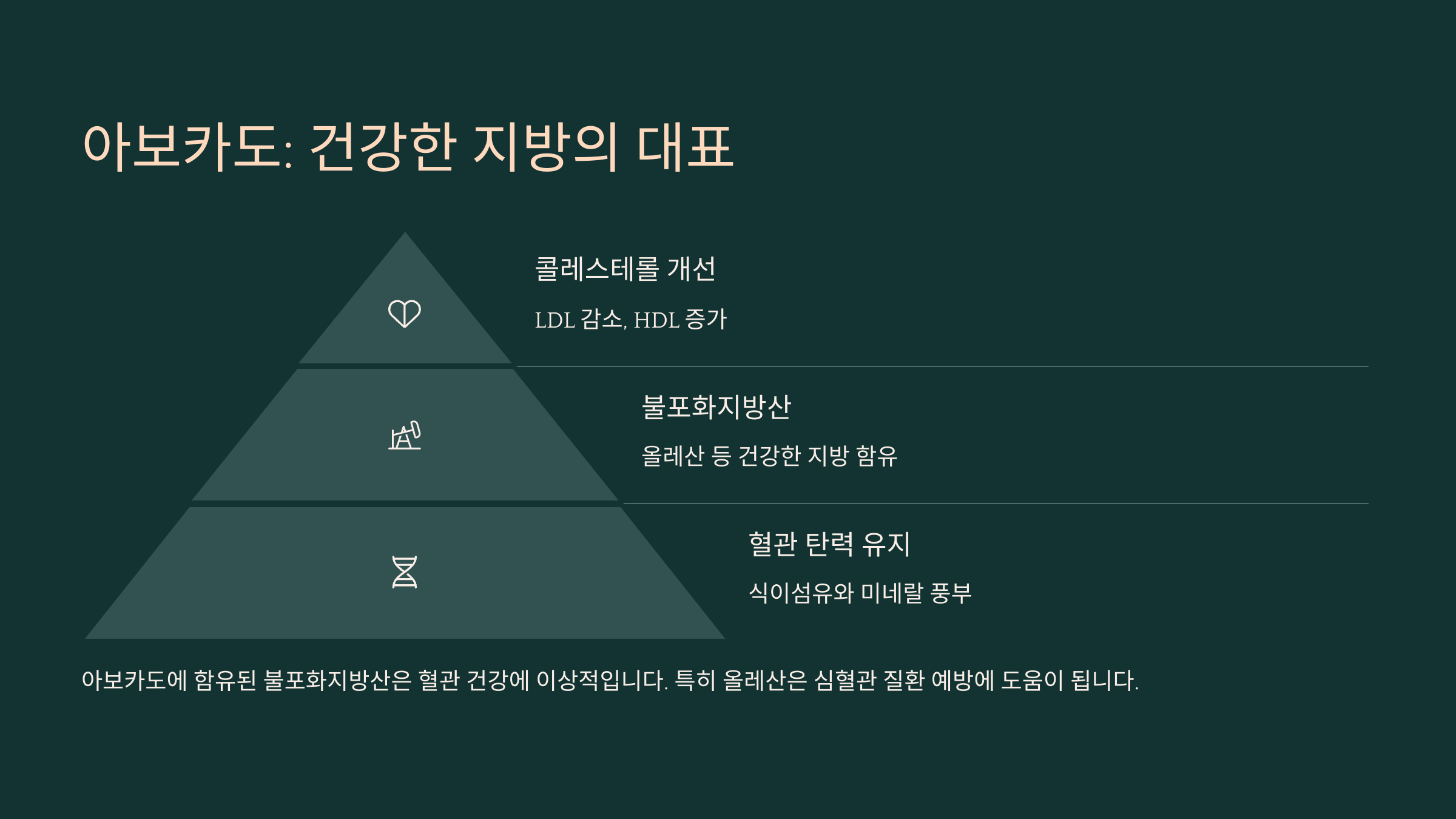 | 불포화지방산 | LDL↓, HDL↑ | 샐러드, 토스트 | 덜 익은 상태로 냉장 보관 |