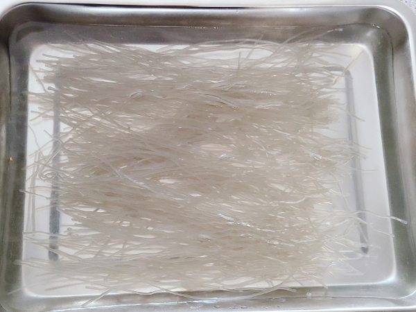 그리고 당면을 불릴 때는 반드시 넉넉한 양의 물을 사용하세요. 당면이 겹쳐져서 제대로 불지 않거나, 중간만 딱딱하게 남을 수 있거든요. 큰 볼에 넉넉하게 물을 담고, 10분에 한 번씩 저어주면 골고루 잘 불어요.