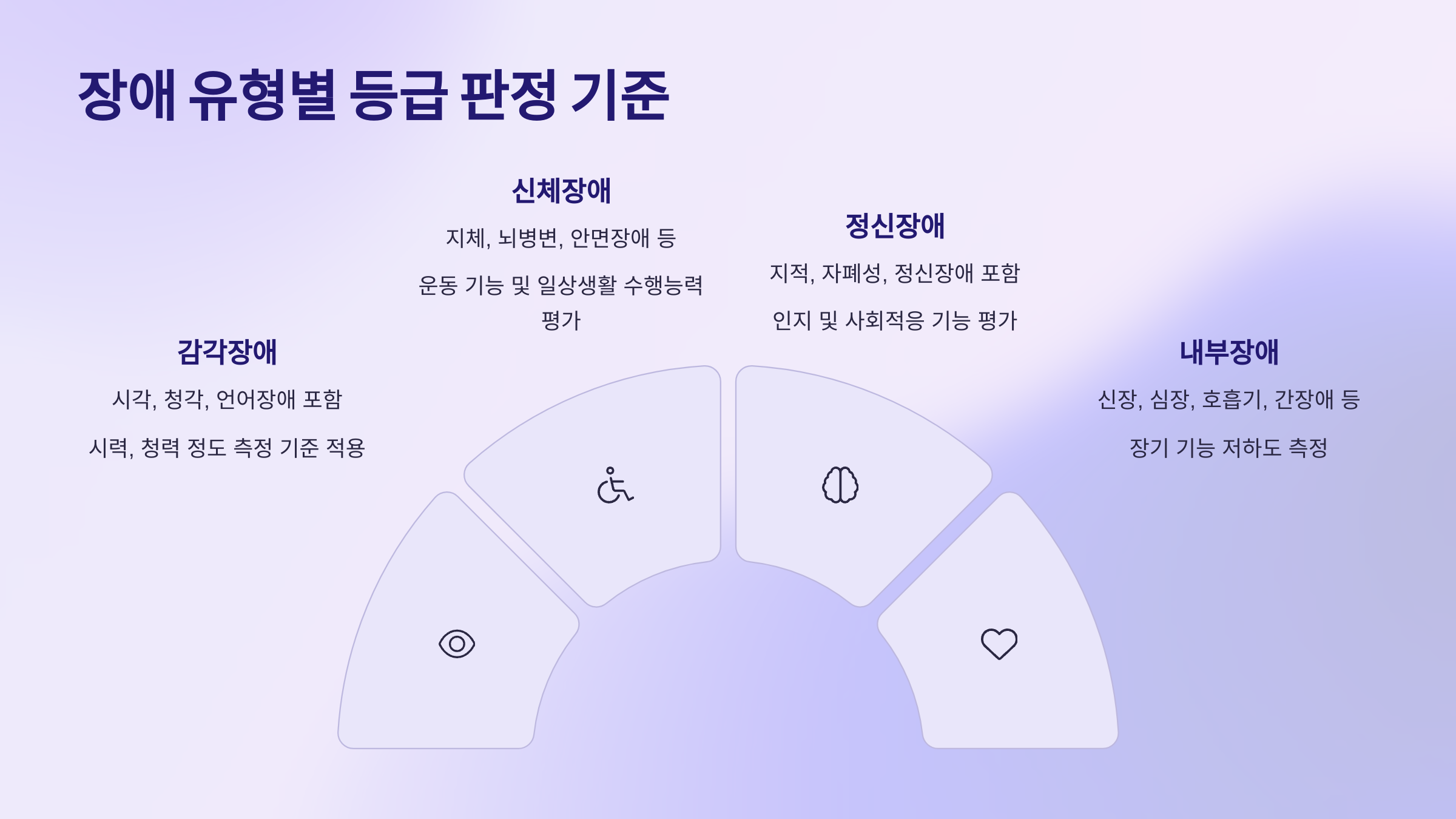 장애는 크게 신체적 장애와 정신적 장애로 나뉘며, 각각의 유형에 따라 판정 기준이 달라요. 신체적 장애에는 지체 장애, 시각 장애, 청각 장애 등이 포함되고, 정신적 장애에는 발달 장애와 정신 질환 등이 있어요.